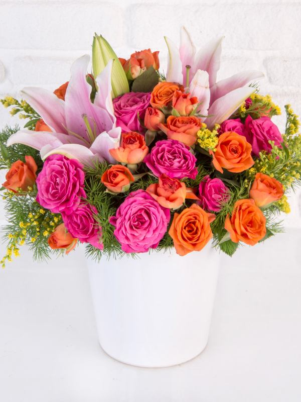 Pembe Lilyum ve Turuncu Çardak Gülleri